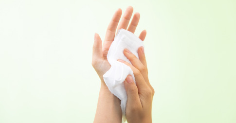調剤薬局は自宅に帰るまでの最後の医療機関であり、みわ薬局を出られる時には安心してご帰宅頂けるように、手指衛生の一環としてエチケットタオルをご利用いただいております。